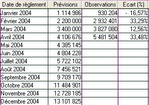 Chaque élément chiffré, valeur lue dans un fichier, ou résultat d'une formule de calcul, peut faire l'objet de prévisions dont Catalys automatisera la comparaison avec les valeurs constatées.